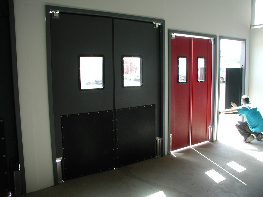 A Dual Swing Door is a specialized door that swings in both directions. Dual Swing Doors are also commonly referred to as double acting doors, impact doors, traffic doors, bump doors, dual acting doors, restaurant doors, and kitchen doors. Double acting doors are found in a variety of businesses such as, restaurants, bakeries, grocery stores, supermarkets, department stores, warehouses, wholesale produce distributors, seafood processors, hatcheries, and slaughterhouses. The double acting doors are important for businesses because they allow business activities to operate more efficiently while compartmentalizing and separating spaces more effectively.